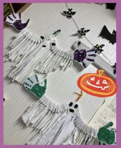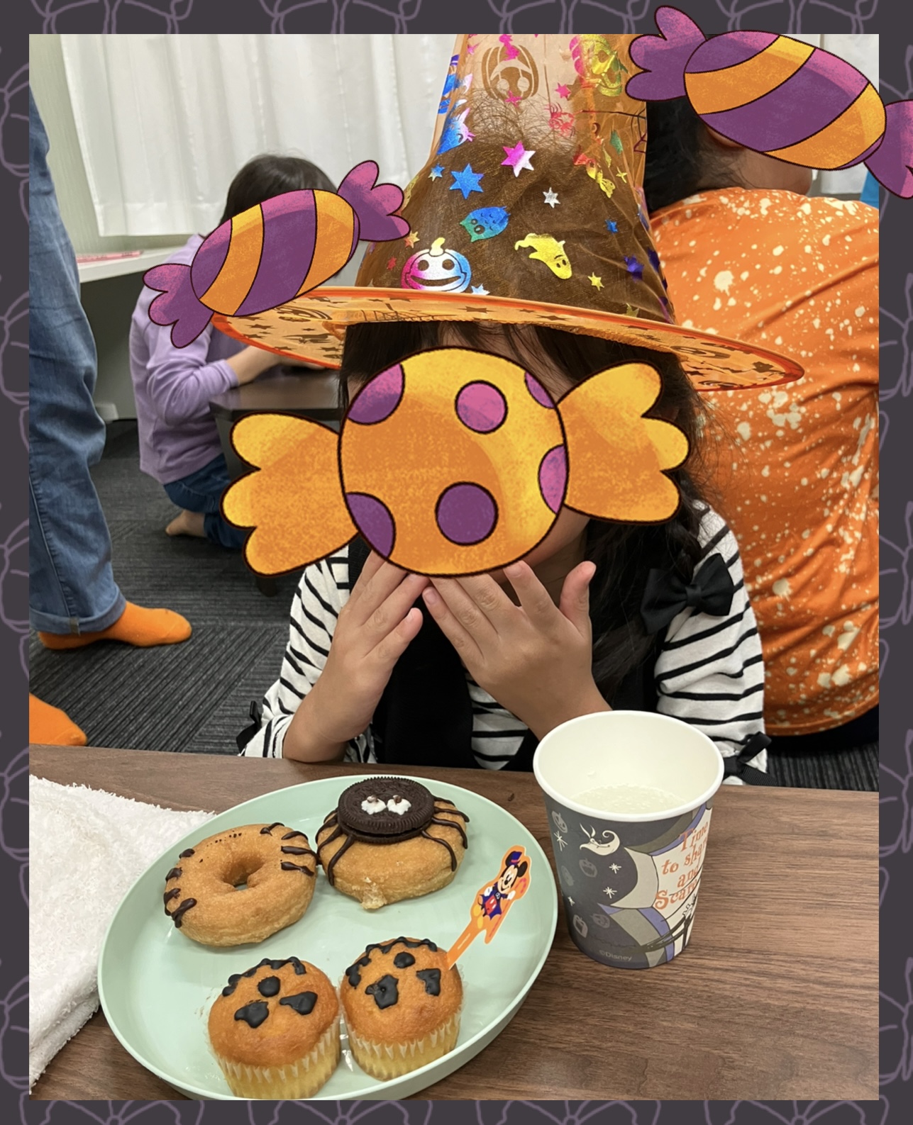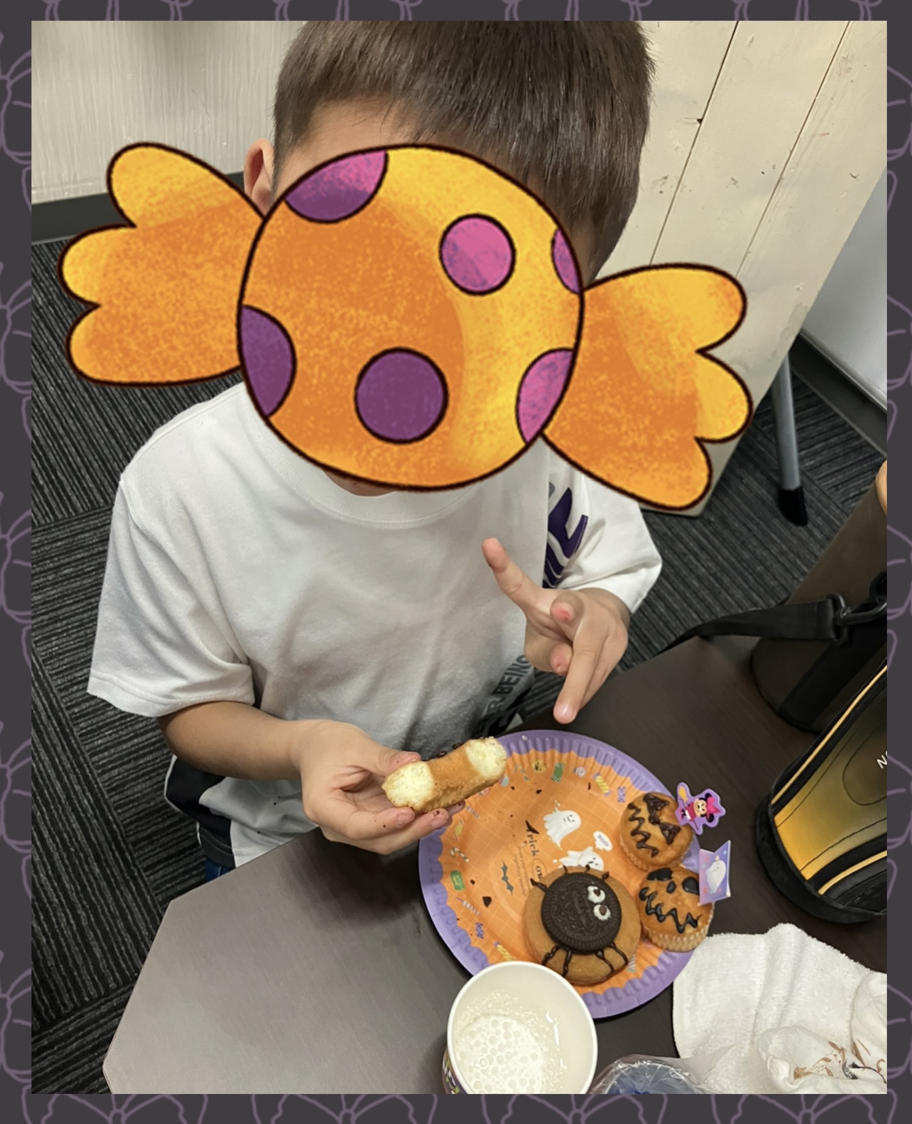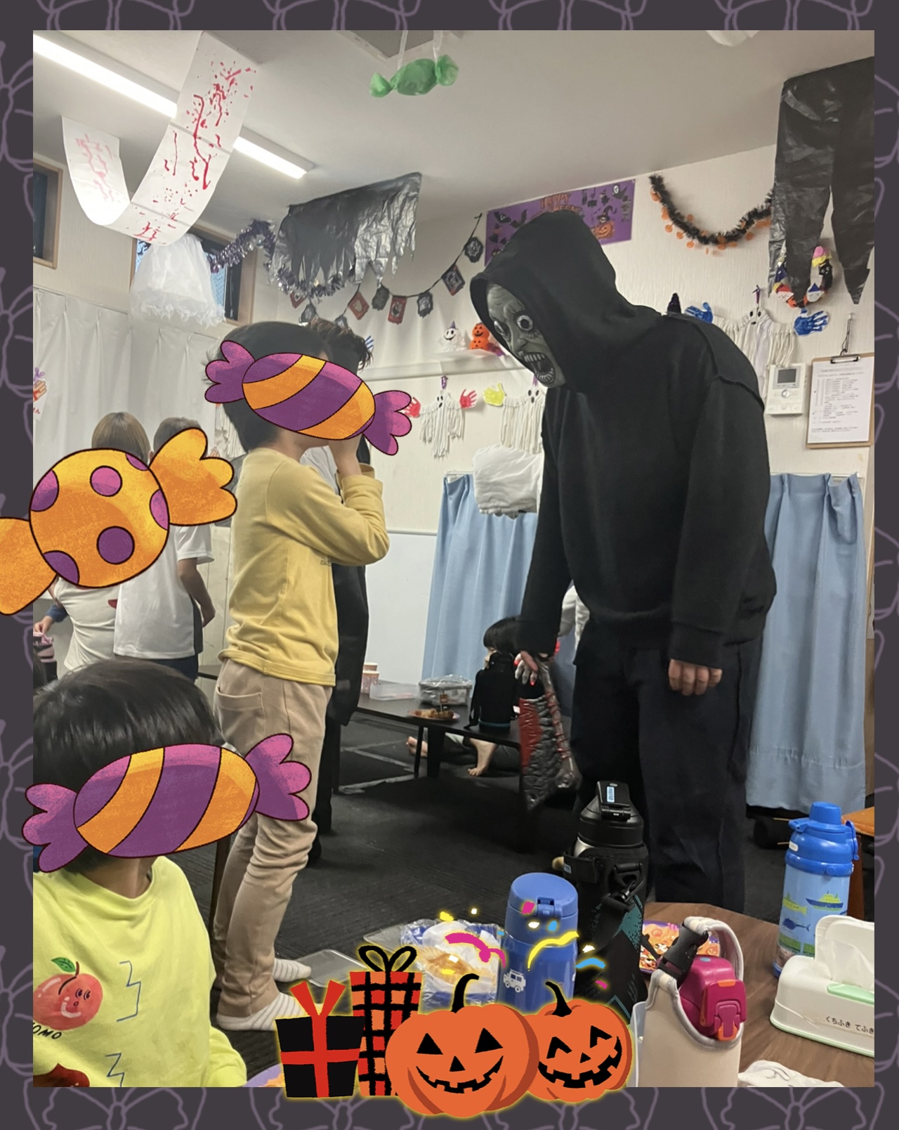 ハロウィンパーティーではおいしいおやつとおばけに囲まれながらみんな楽しんで過ごしていました🎃